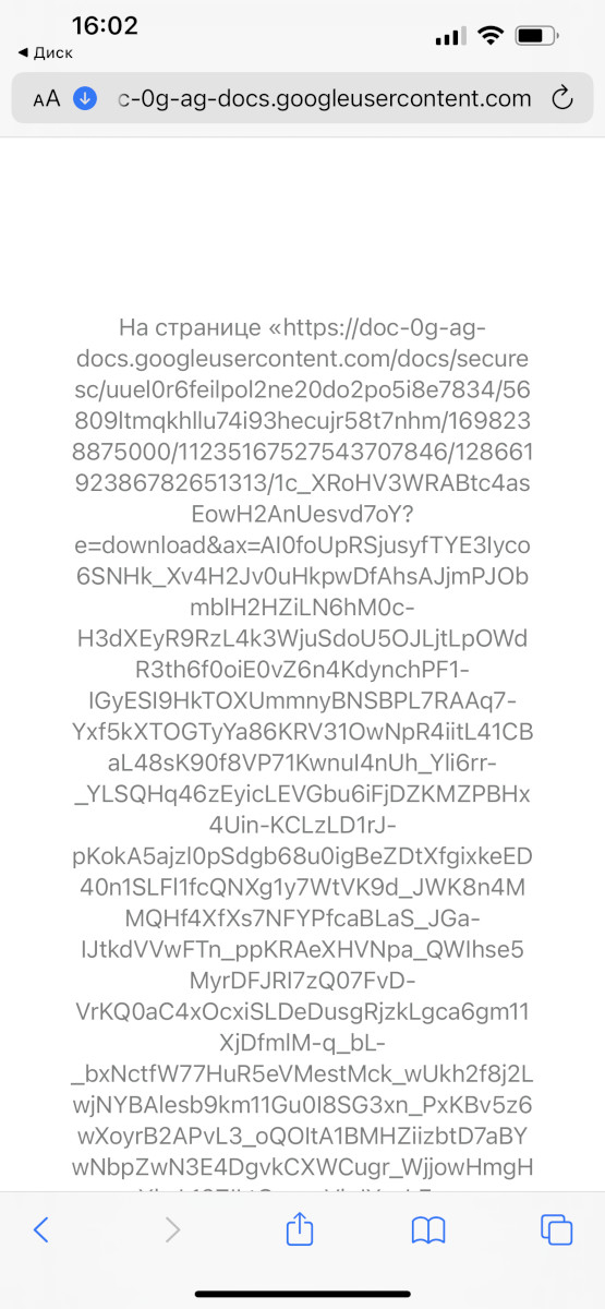 Описание проблемы: На устройстве iOS (iPhone/iPad) в браузере Safari при попытке нажать на кнопку ⤓ Скачать на странице Google Drive ничего не происходит, или появляется ошибка: «на странице https://....googleusercontent.com/... возникла проблема».