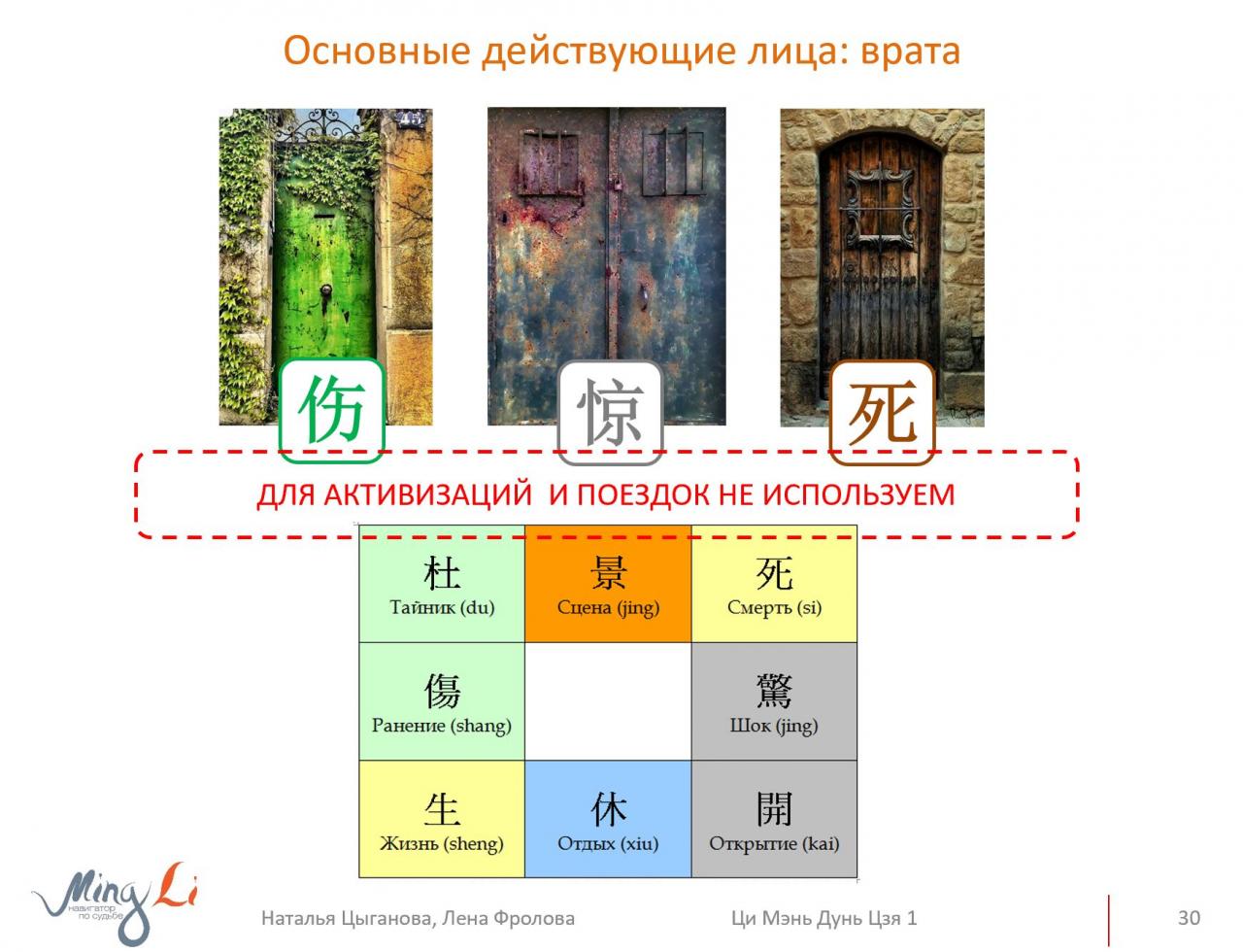 Врата – это человеческая ци, которая активизируется при движении. Если вы отправились куда-то по Ци Мэнь, поехали или пошли, то в первую очередь активизируете врата. А они несут нам совершенно разную энергию и выбирать их надо не по цвету. «Зелененькие» врата как раз не самые благоприятные.