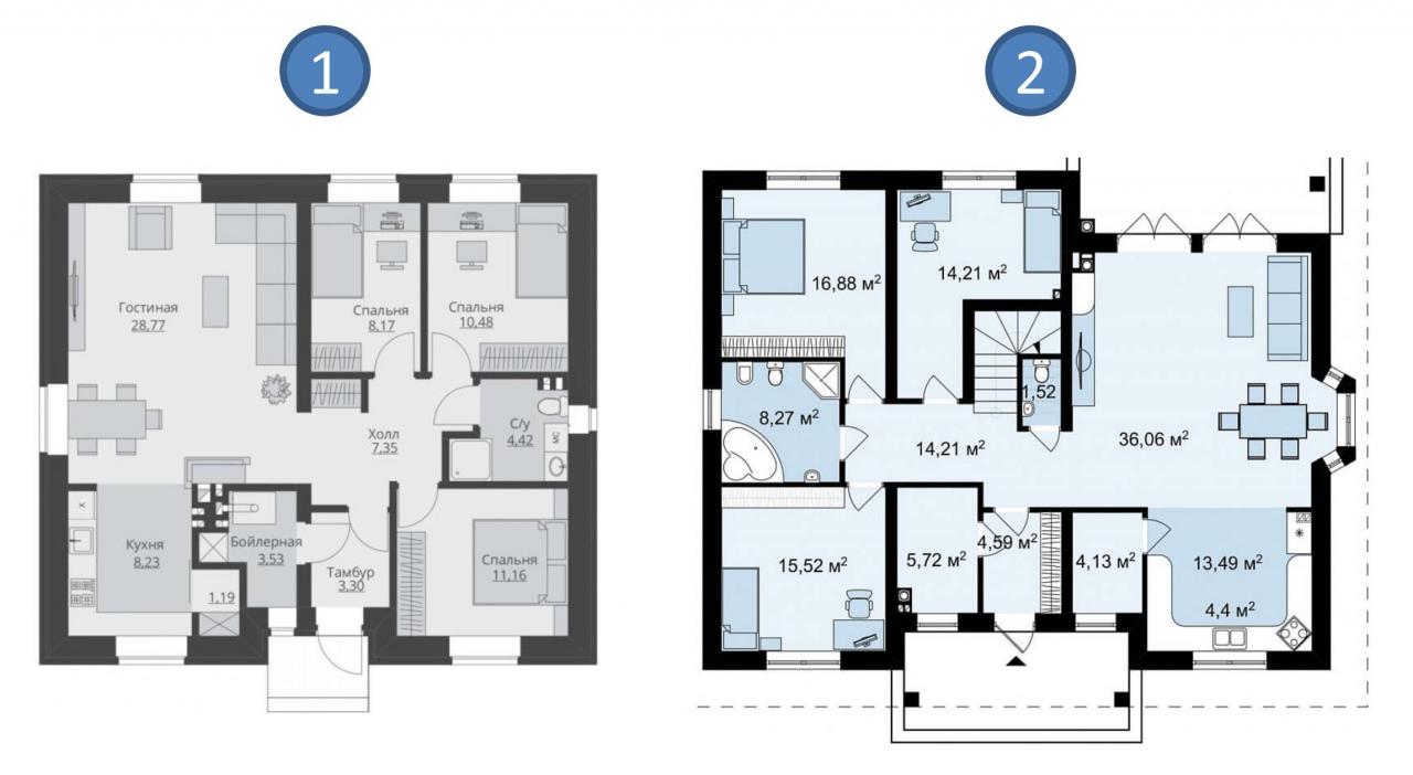От планировки и расположения спален зависит и то, как можно расставить кровати, плиту, рабочие столы.
