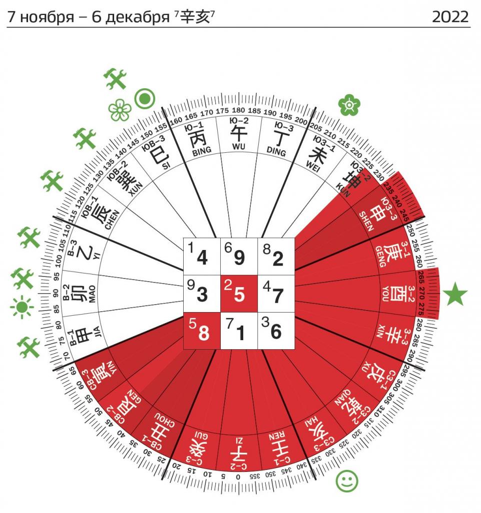 - В 2023 не стоит делать ремонт, а также копать землю на юго-западе, западе, северо-западе и востоке 2 (15-градусный сектор, см схему). На схеме сектора помечены красным цветом.