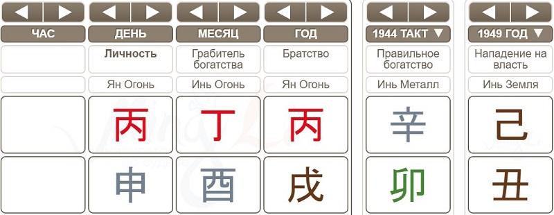 1924 – начало такта Водяной Змеи 癸巳, год Деревянной Крысы 甲子 – Каринская с детьми покидает Советскую Россию под предлогом организации детской выставки в Париже. Помогает ей, ну разумеется, мужчина – народный комиссар Луначарский. Женщина вывозит хитростью и драгоценности и предметы искусства. Это довольно нервный период с нетипичной для Варвары Водой. Этот элемент она переносит сложно, создаются рискованные ситуации, нестандартные для ее Бацзы.