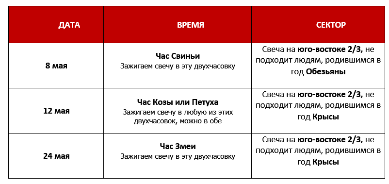 - Дни «разрушения» – 17 и 29 мая особенно опасны для людей, у которых в карте уже есть столкновение Змея и Свинья.