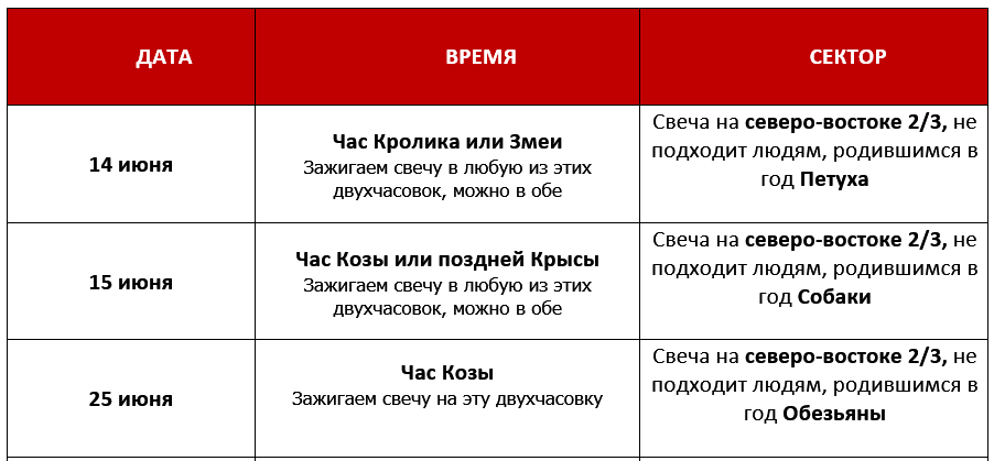 - Дни «разрушения» – 11 и 23 июня особенно опасны для людей, у которых в карте уже есть столкновение Лошади и Крысы.