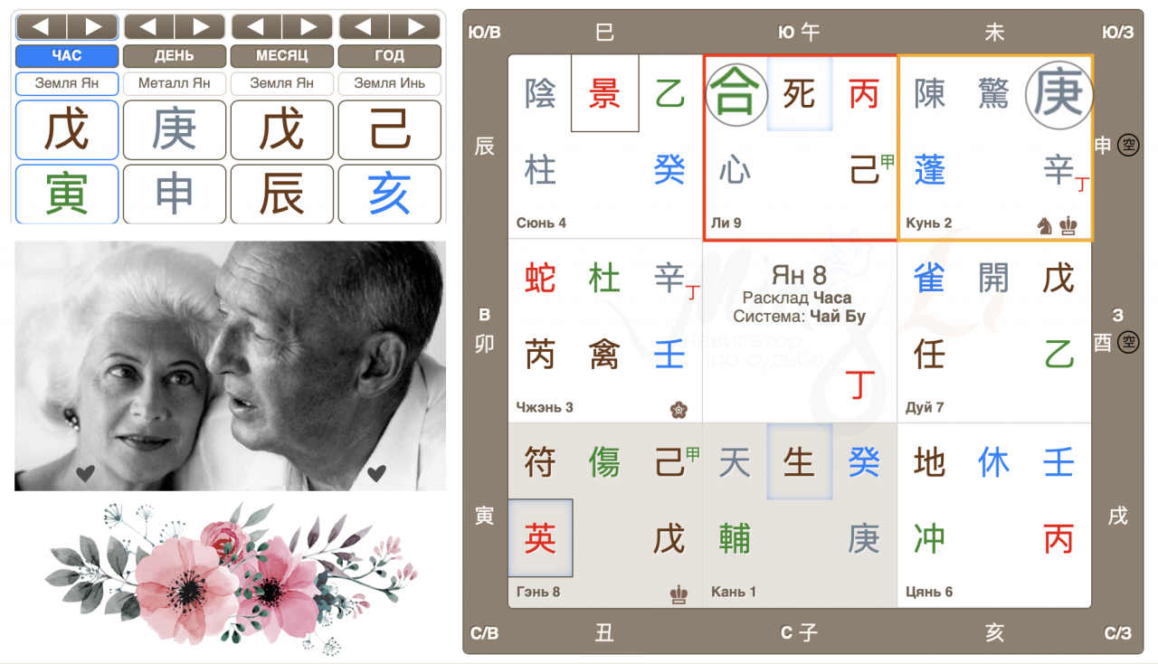 Как всегда, секреты кроются в деталях. Любовь – это химия, а перерастет ли она в семью? Символ брака – дух 合 Лю Хэ опустился в дом Ли. Год 1922 с Небесным стволом 壬 (дом Цянь) не побеспокоил дом брака Ли, а 1923 год с Небесным стволом 癸 (дом Кань) уже встал в оппозицию к дому брака. В доме Кань – знак финансов (врата 生 Рождение) и можно предположить, что сложности с деньгами стали главным аргументом против брака.
