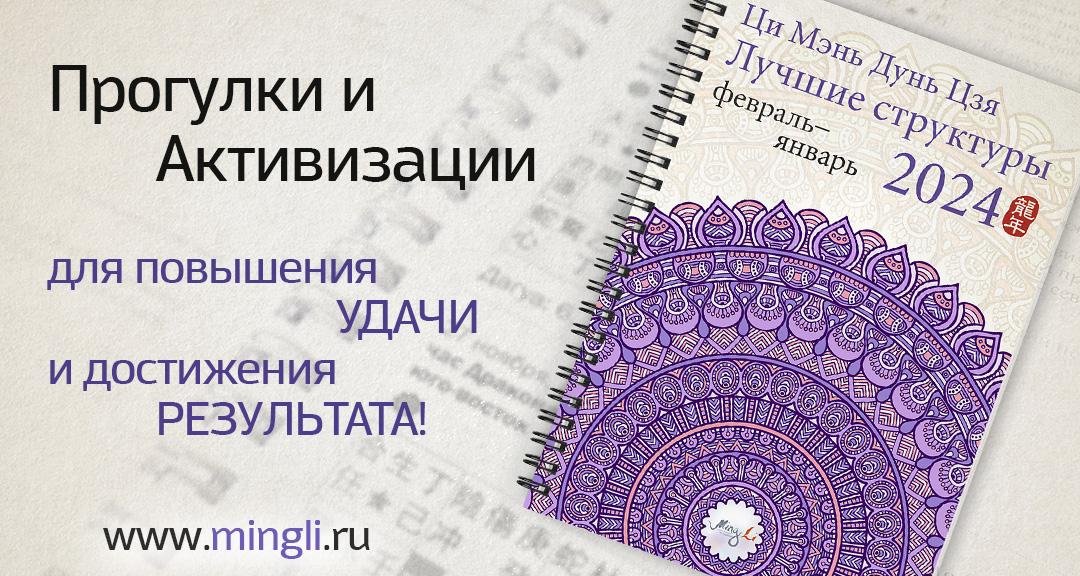 Справочник «Лучшие структуры Ци Мэнь Дунь Цзя 2024» – тщательно подобранные прогулки и активации, повышающие удачу. Выходит в 4-х тетрадях, так как активизаций на год довольно много – 1400-1500, с подробным описанием! Вы будете обеспечены хорошей ци весь год.