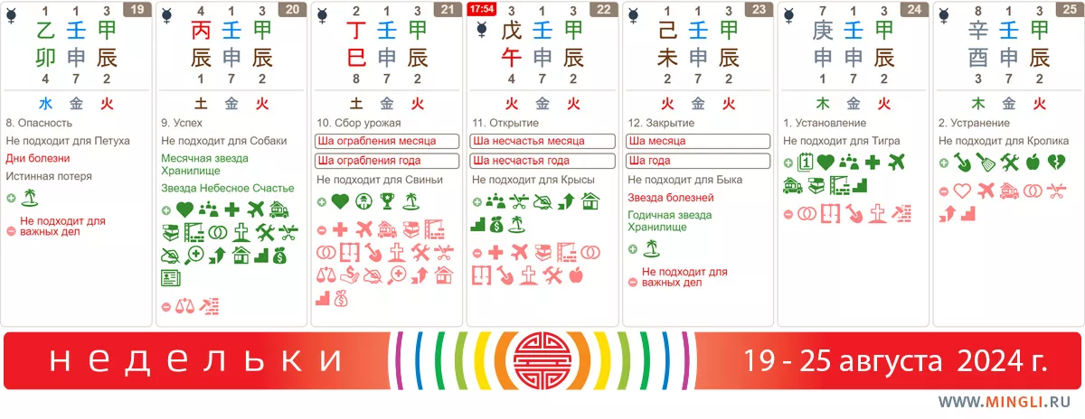 Рекомендации на неделю 19 – 25 августа (прогноз по базцы на август, ба цзы прогноз 2024, прогноз гороскоп на август, бадзы август)