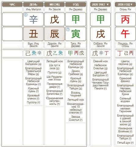 В карте Губина в году стоит Янское Дерево (甲). Это образ мощного, высокого дерева, символизирующего рост, принципы и жизненную силу.