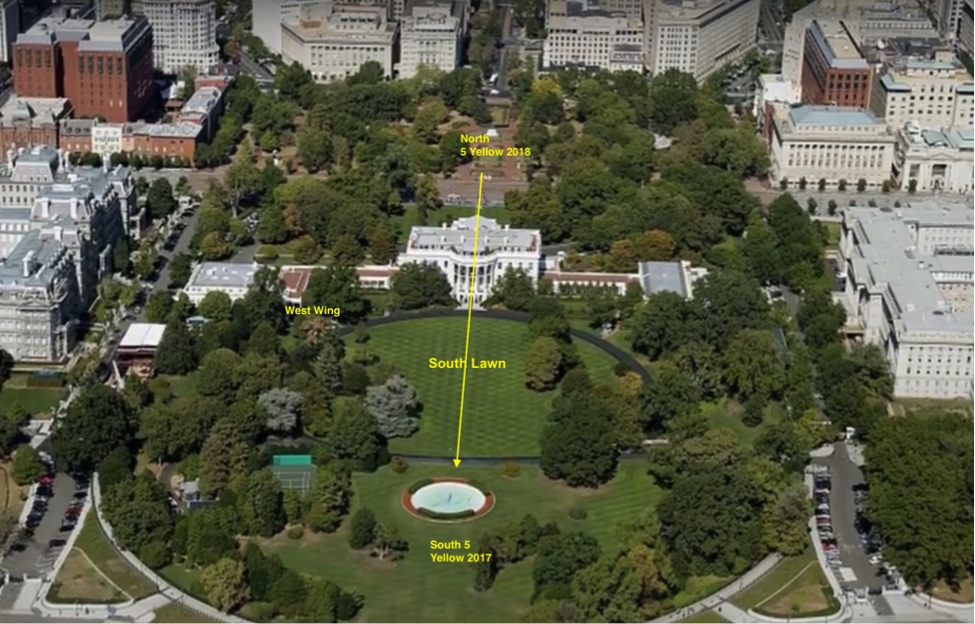 Белый Дом расположен на Южной/Северной осях. В 2018 году 5ка желтая переместится с юга на север (это – тыл Белого Дома).