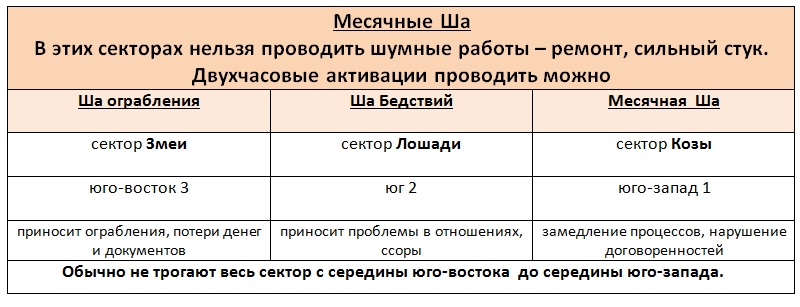 Юго-запад. В апреле здесь складывается не совсем гармоничная комбинация звезд 9–6. Комбинация дает неплохие возможности для продвижения в карьере, но если вы здесь долго находитесь, возможны головные боли, мигрени, повышение давления, особенно у мужчин. Могут обостриться болезни дыхательной системы, возникнуть проблемы со зрением. Для защиты можете поставить что-то керамическое – вазу, или положить кристаллы, камни. Активатор в этом секторе лучше остановить.