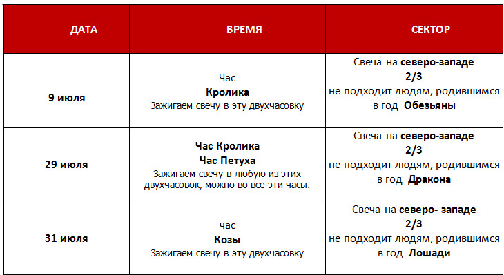 12, 24 июля – хороши для открытия бизнеса, новоселья, приема гостей. Можно начинать новое дело или возобновлять бизнес после долгого перерыва, вступать в брак или договариваться о сделках. Можно принимать должность, начинать учиться. Если вы не можете отменить дела из-за «коридора затмений», то используйте эти дни. Не подходят для рожденных в год Свиньи.
