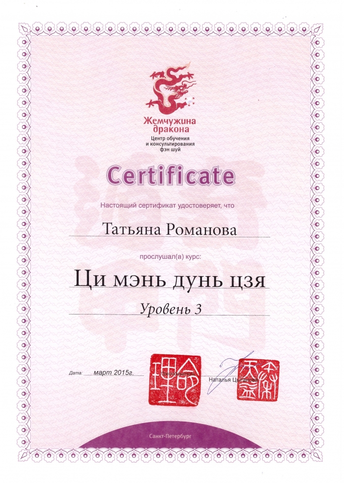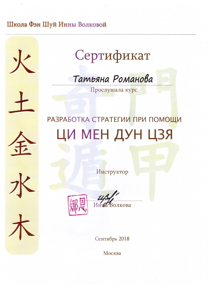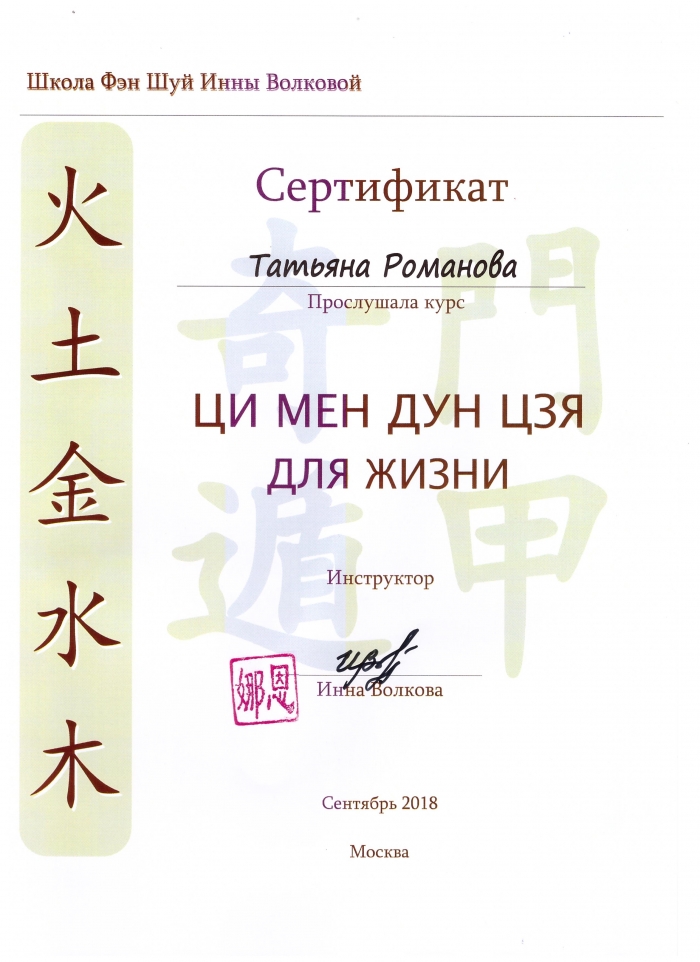 Натальи Цыгановой (Россия) - полный курс Фэн-шуй, Ци Мэнь Дунь Цзя, БаЦзы