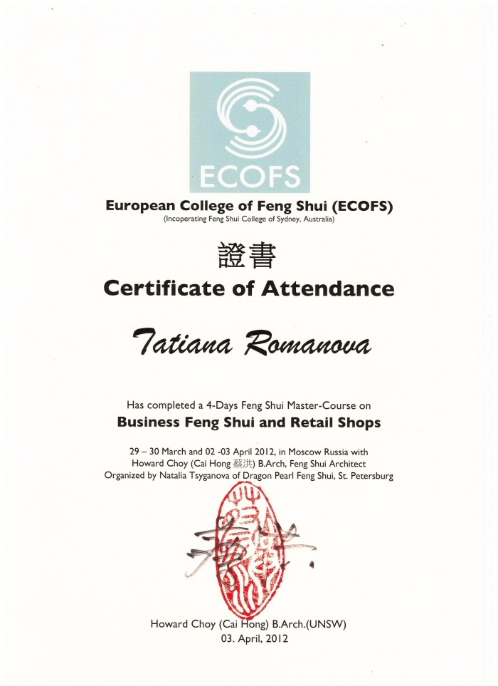 Говарда Чоя (Германия) - полный курс Фэн-шуй.