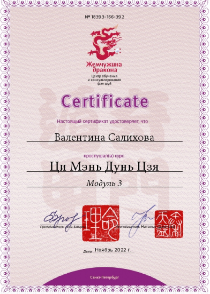 Меня зовут Валентина Салихова, я консультант по китайской метафизике (Ба цзы, Ци Мэнь): • анализ судьбы, • прогнозы, • повышение удачи, • выбор дат для важных событий.