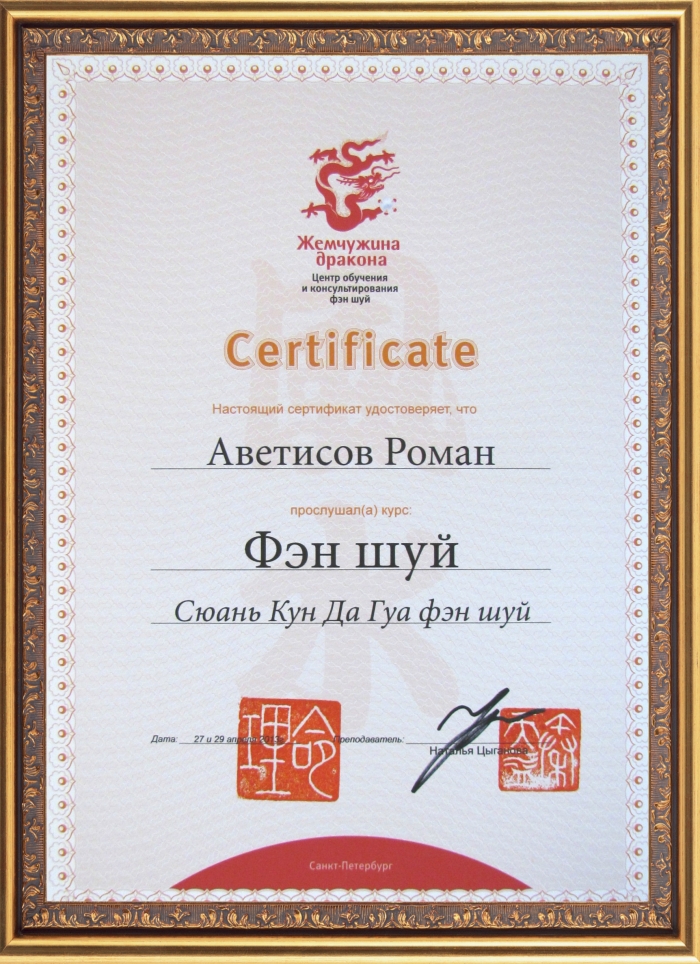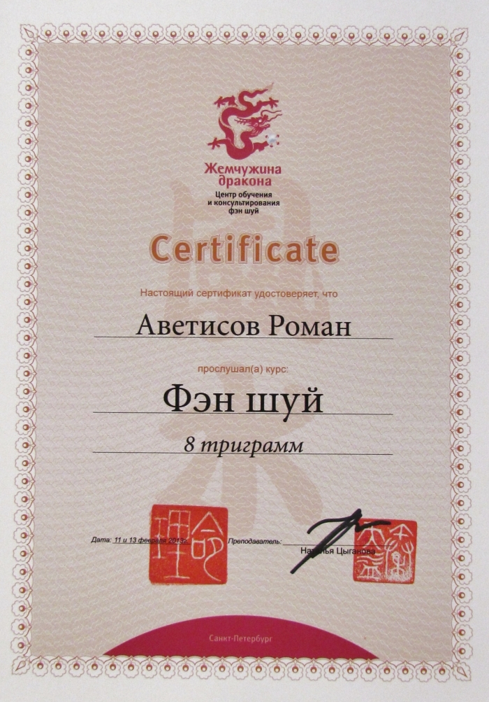 С моими работами, а также с дополнительной информацией обо мне можно ознакомиться в интернете на моем сайте, набрав в поисковике: "Роман Аветисов фэн-шуй".