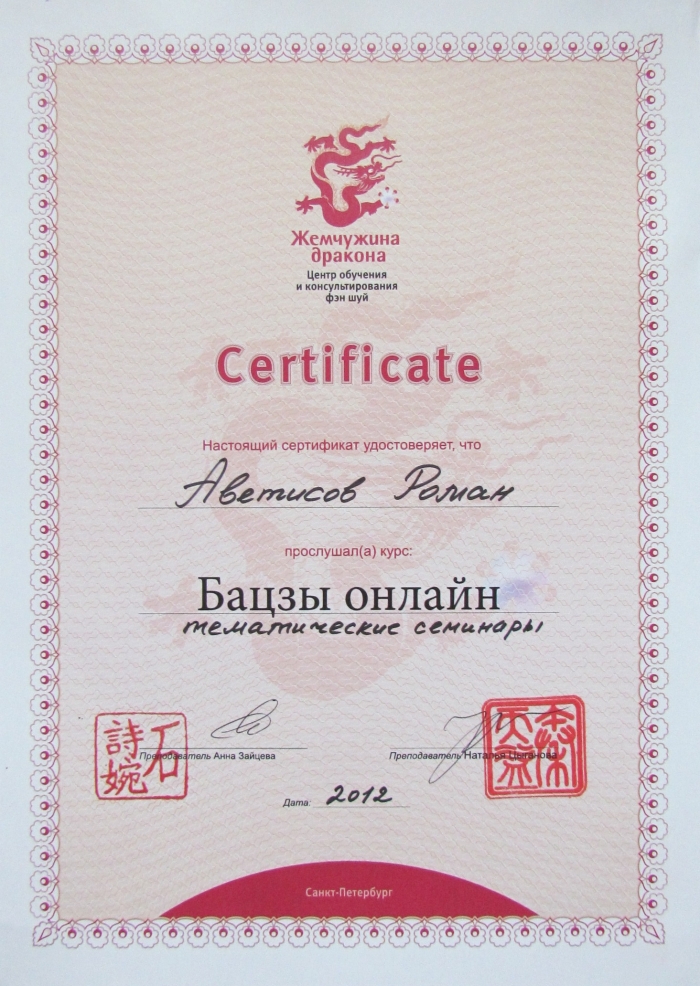 Добрый день. Являюсь консультантом по китайской астрологии Ба Цзы и классическому Фэн-шуй с 2012 года.