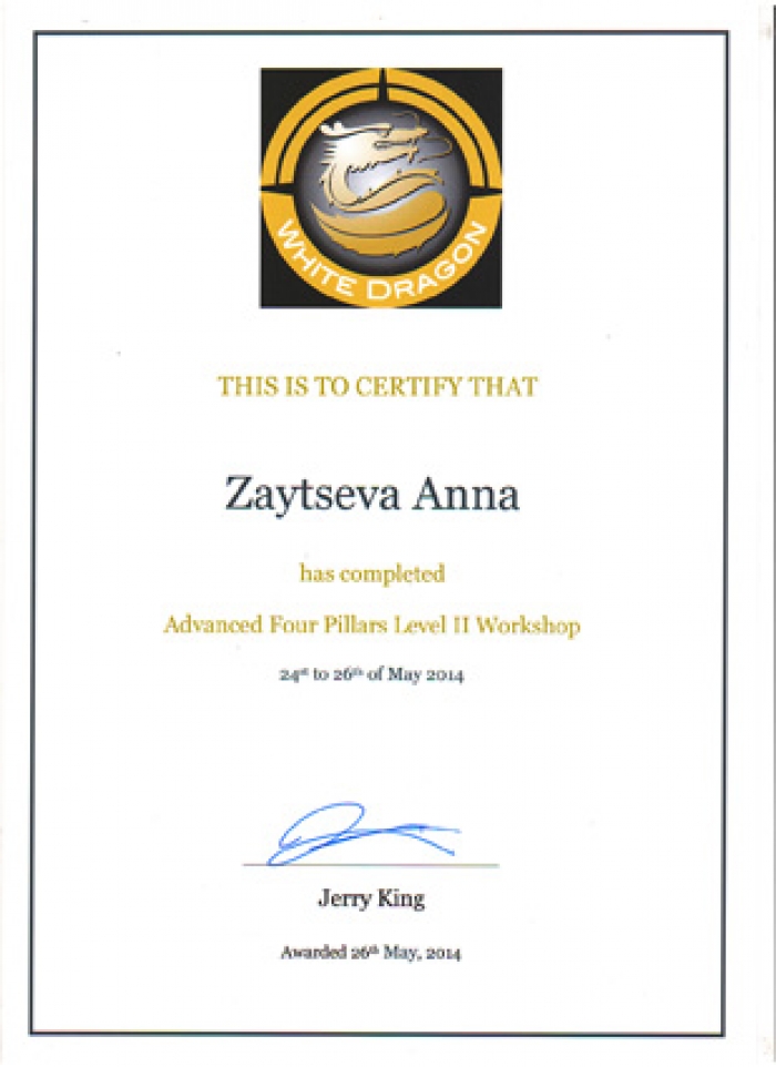 Преподаю с 2009 года, в соавторстве с Натальей Цыгановой («Бацзы. Путь к удаче», базовые и продвинутые курсы).