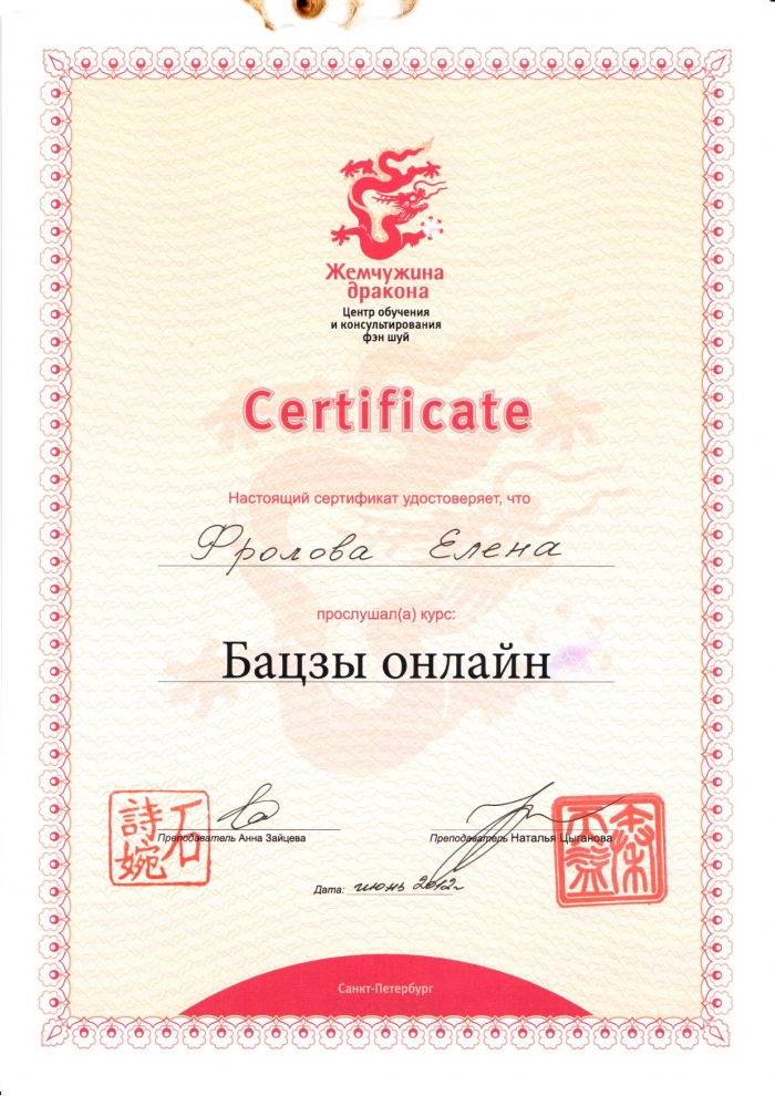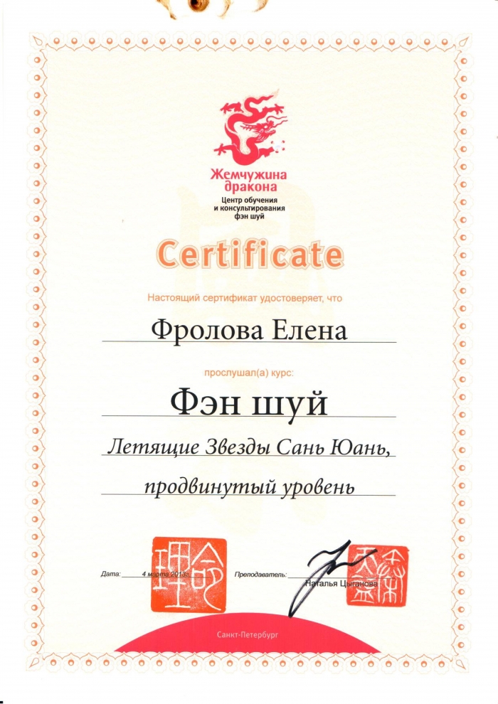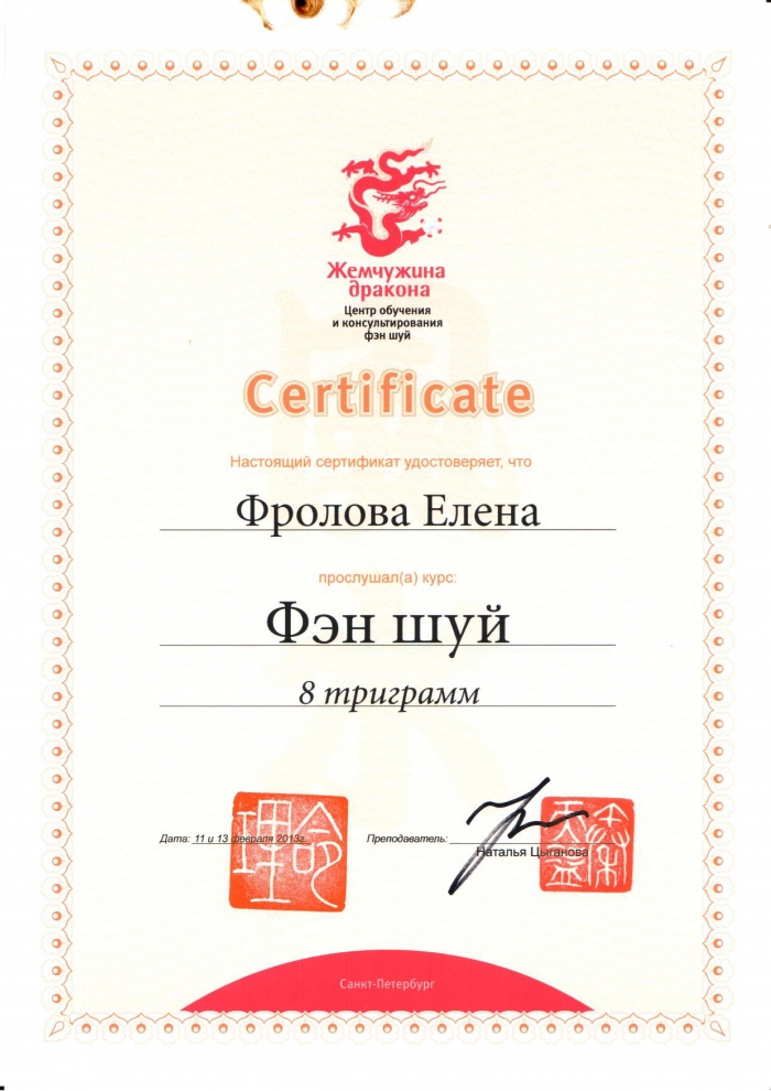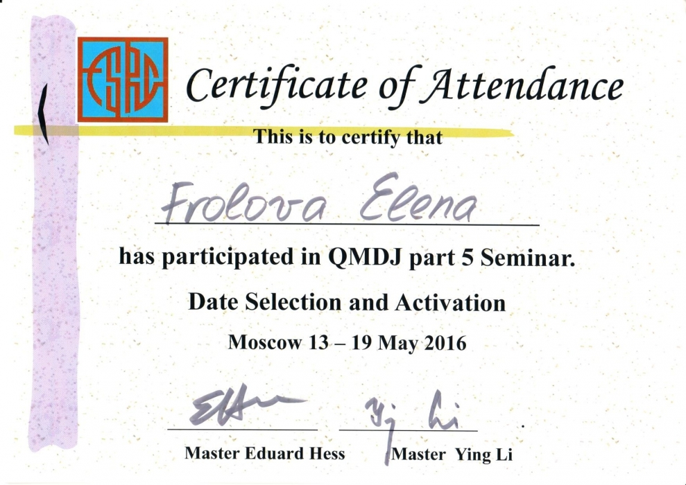 Начиная с 2009 года много и настойчиво училась у отечественных Мастеров китайской метафизики.