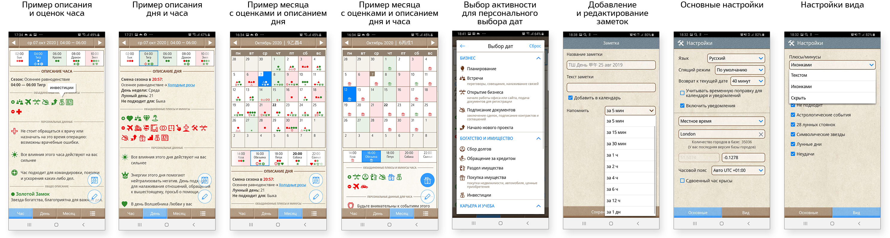 - База городов с возможностью обновления с нашего сайта для автоматического определения координат и UTC (сейчас в базе около 60000 городов)